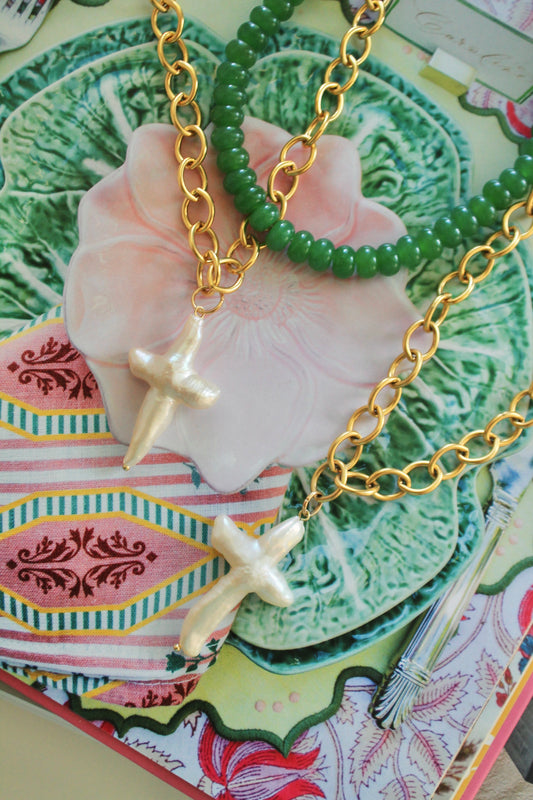 Chunky Pearl Cross Necklace