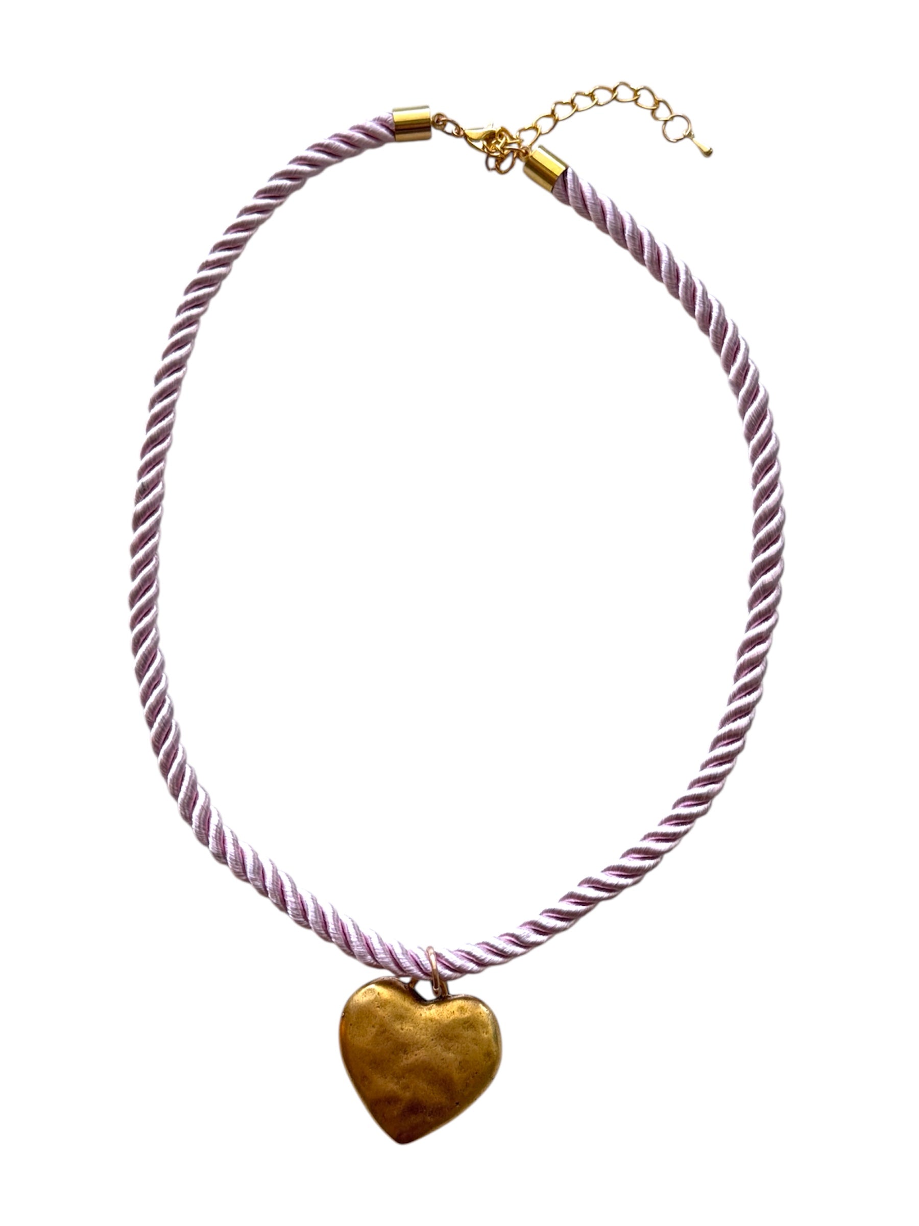 - Gold heart pendant on metallic baby pink rope